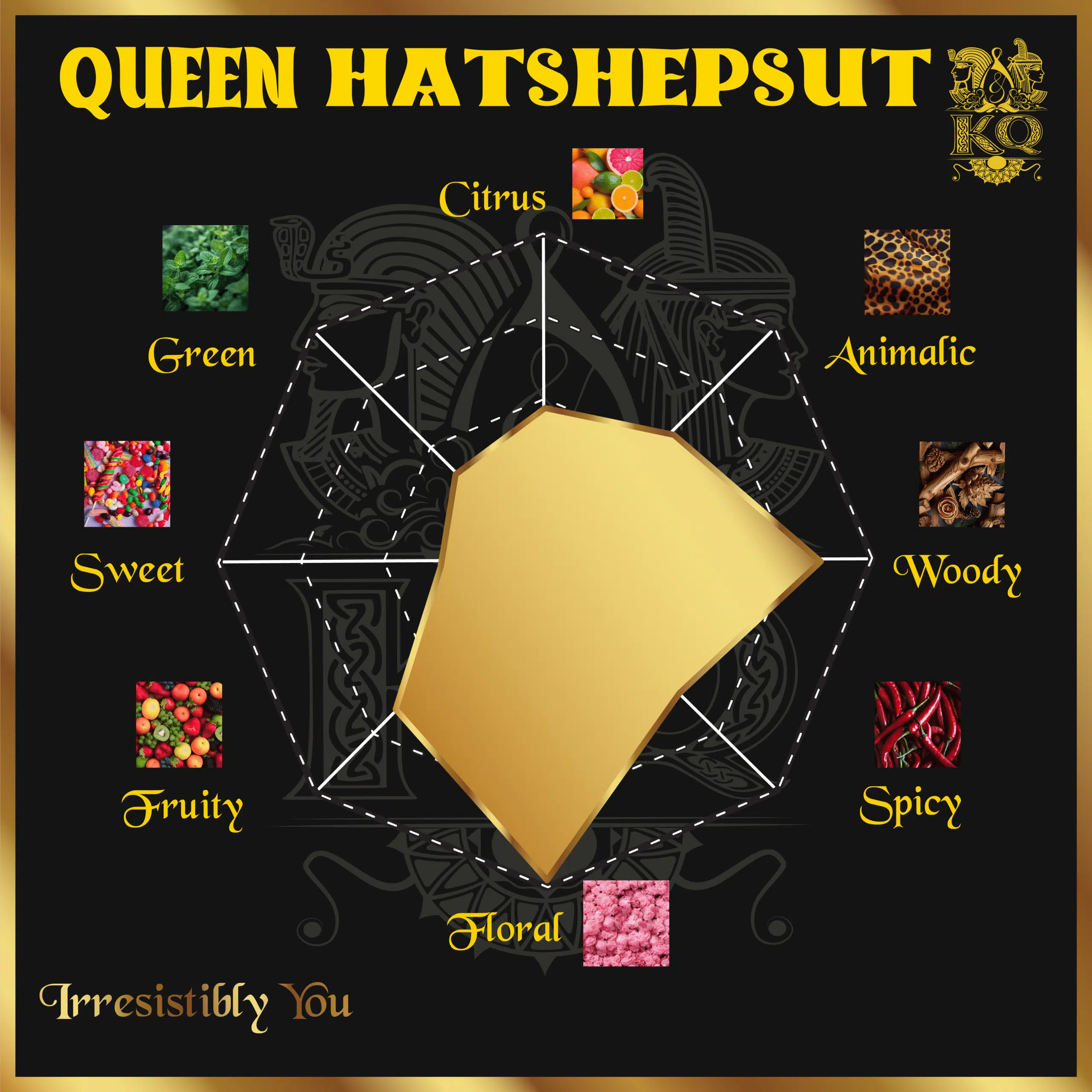 Queen Hatshepsut by K&Q is a tribute to the strength, elegance, and vision of one of ancient Egypt’s most iconic rulers. This perfume embodies the boldness and sophistication that defined her reign, weaving together a rich tapestry of luxurious notes that exude confidence and charm.